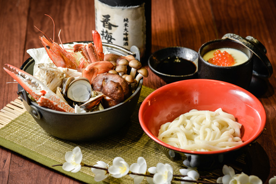 新鮮的三點蟹、大顆蛤蜊與鮮菇時蔬擺滿一鍋,以濃郁的味噌高湯烹煮至入味,海味極鮮與味噌獨有香氣融合,加上Q彈帶勁的烏龍麵條一併品嘗,滋味甚好!